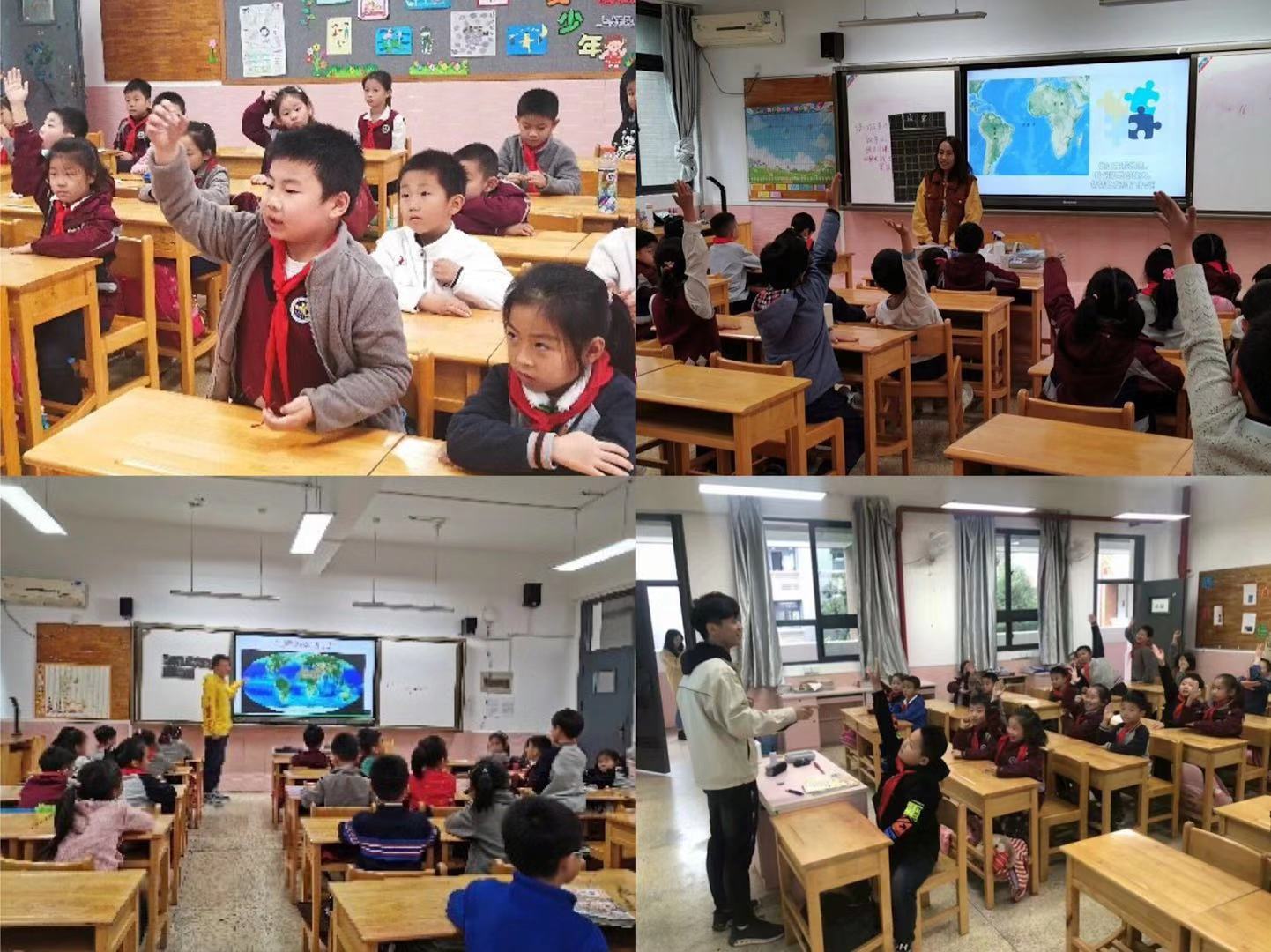 课堂上,研究生党员们通过鲜活的照片、生动的视频,向小朋友们讲解了有关地质的奥秘。小朋友们也踊跃发言,争先恐后地说出自己心目中“地质”的样子。“地质是土地和石头”、“地球是一幅水彩画”等等,小同学们传达出的独特又富有想象力的思维,让大家觉得既惊喜又弥足珍贵。在趣味问答环节,小朋友们丰富的知识面和求知若渴的进取精神,再一次打动了所有志愿者,教室里一派活泼热烈的景象。